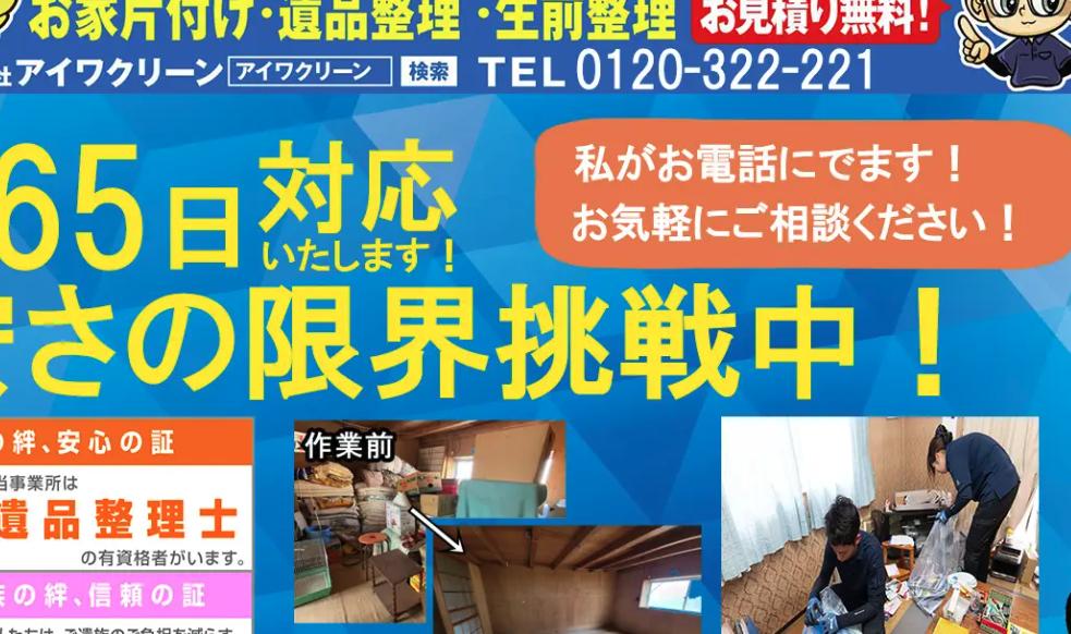 『合同会社 アイワクリーン』は、不要になった家具や家電の回収から故人の遺品整理やゴミ屋敷の片付けなど、幅広いサービスを提供する会社です。