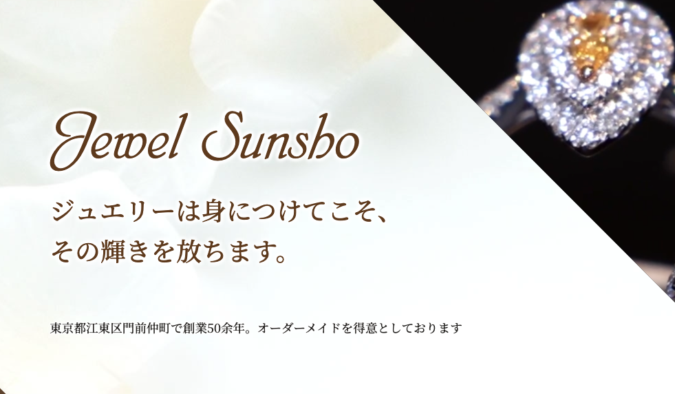 『株式会社 ジュエルサンショウ』は地域に根差したお店で、日々温かみ溢れる丁寧な接客を大切にしており、美しいジュエリーと出会える場をご用意しています。